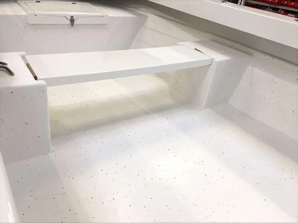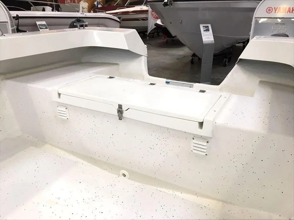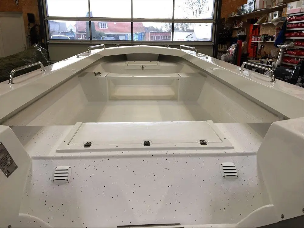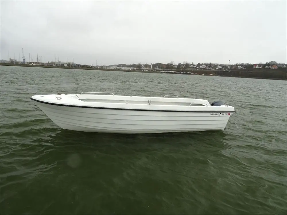 Fjordjollen har lagt stor vægt på sikkerheden, derfor har de valgt en konstruktion der giver båden en helt plan dørk samt et højt fribord. Jollen er dobbeltskroget og har 2 stk. aflåselige stuerum, 1 rum for og 1 rum agter. En ekstra fin finesse er den aftagelige tofte, der gør det muligt at benytte hele dørken uden forhindringer. Båden er udstyret med 4 stk. rustfrie rælinger til montering af f.eks. stangholdere. Der er 2 års garanti på produktet.