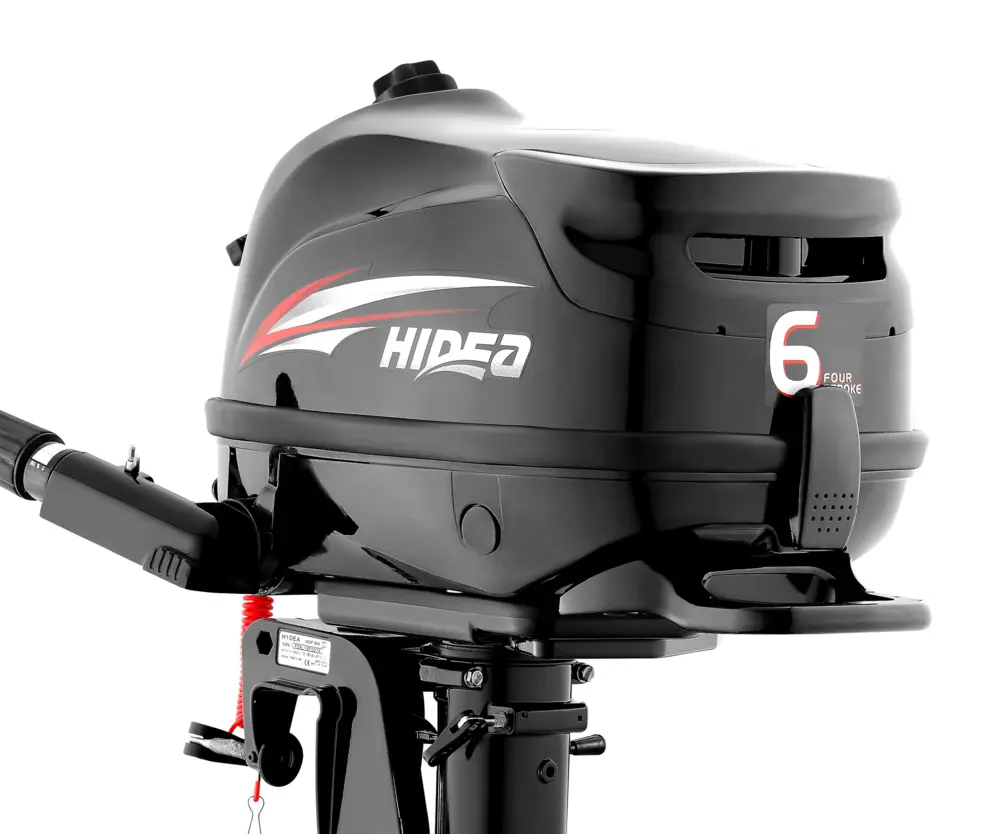 Hidea 6 HK vandkølet påhængsmotor i superletvægt - vejer kun 27 kg (28 Kg for langt ben) og er dermed blandt markedets letteste motorer, specielt egnet til små gummibåde og joller.