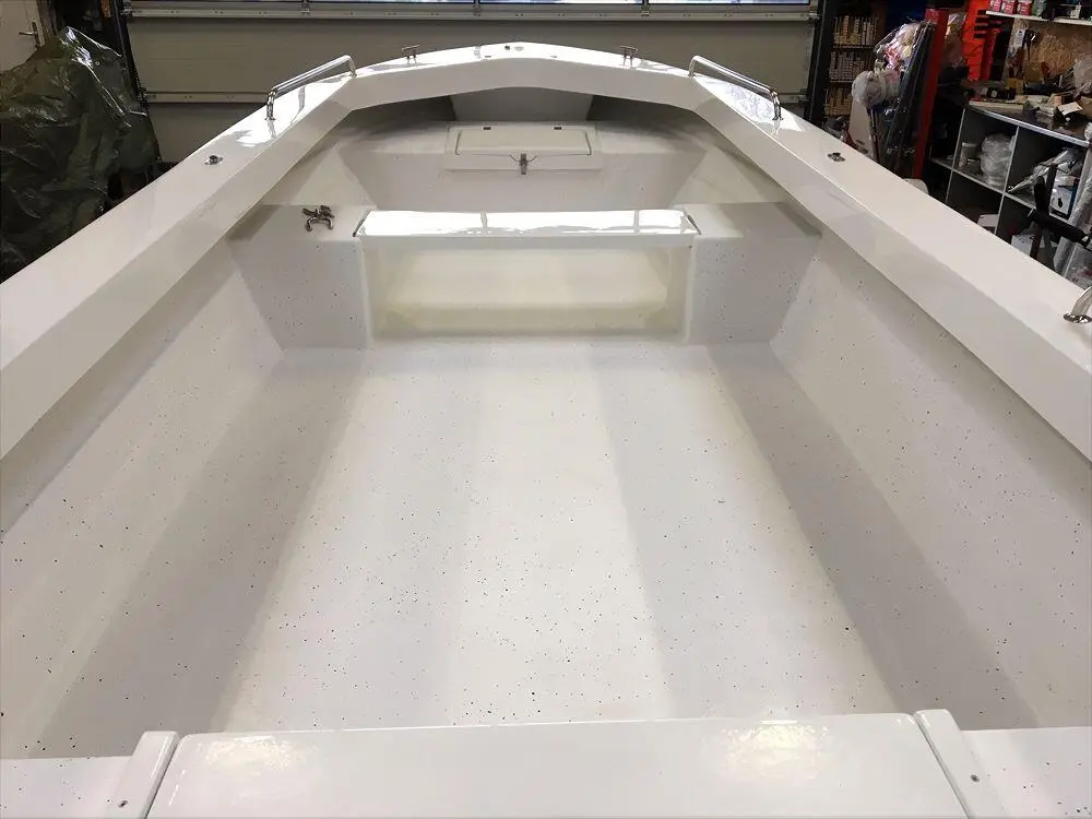 Fjordjollen har lagt stor vægt på sikkerheden, derfor har de valgt en konstruktion der giver båden en helt plan dørk samt et højt fribord. Jollen er dobbeltskroget og har 2 stk. aflåselige stuerum, 1 rum for og 1 rum agter. En ekstra fin finesse er den aftagelige tofte, der gør det muligt at benytte hele dørken uden forhindringer. Båden er udstyret med 4 stk. rustfrie rælinger til montering af f.eks. stangholdere. Der er 2 års garanti på produktet.