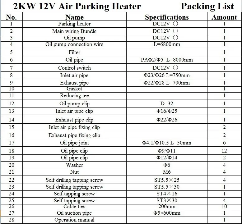 JP Oliefyr / Kabinevarmer (luft) 2 KW, 12 Volt (Komplet pakkesæt)