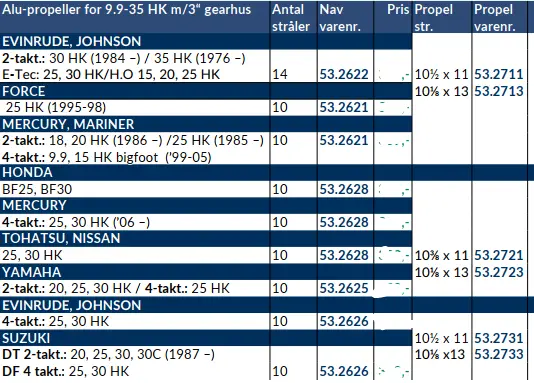 Alupropeller for 9.9-35 HK med 3" gearhus