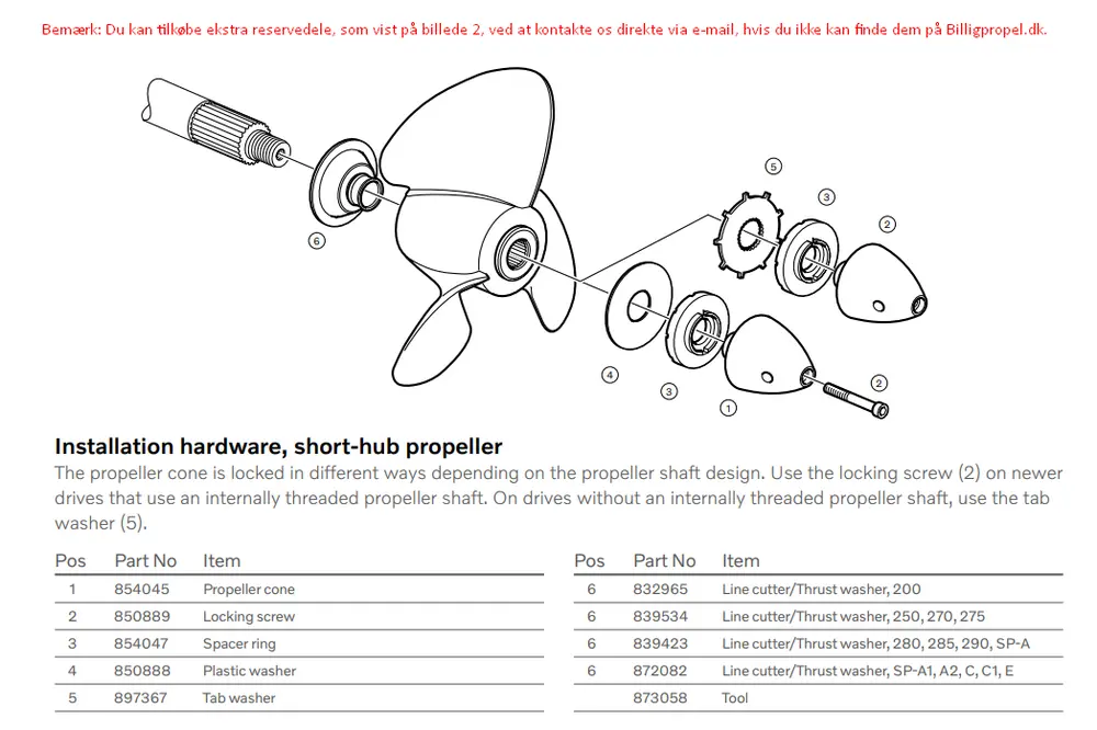 Bemærk: Du kan tilkøbe ekstra reservedele, som vist på billede 2, ved at kontakte os direkte via kontaktformularen, hvis du ikke kan finde dem på Billigpropel.dk.